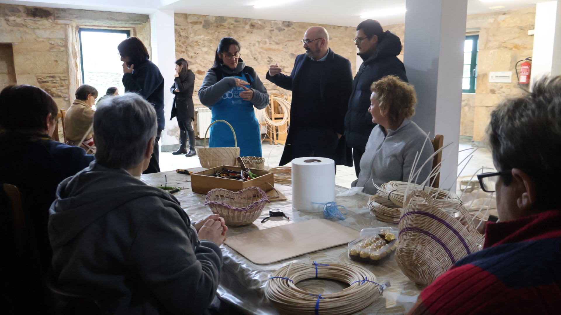 O vicepresidente Efrén Castro achegouse esta tarde a Ligonde, en Monterroso, onde se está a desenvolver un curso de cestería co programa Mans Artesás, promovido pola Vicepresidencia da Deputación de Lugo.
